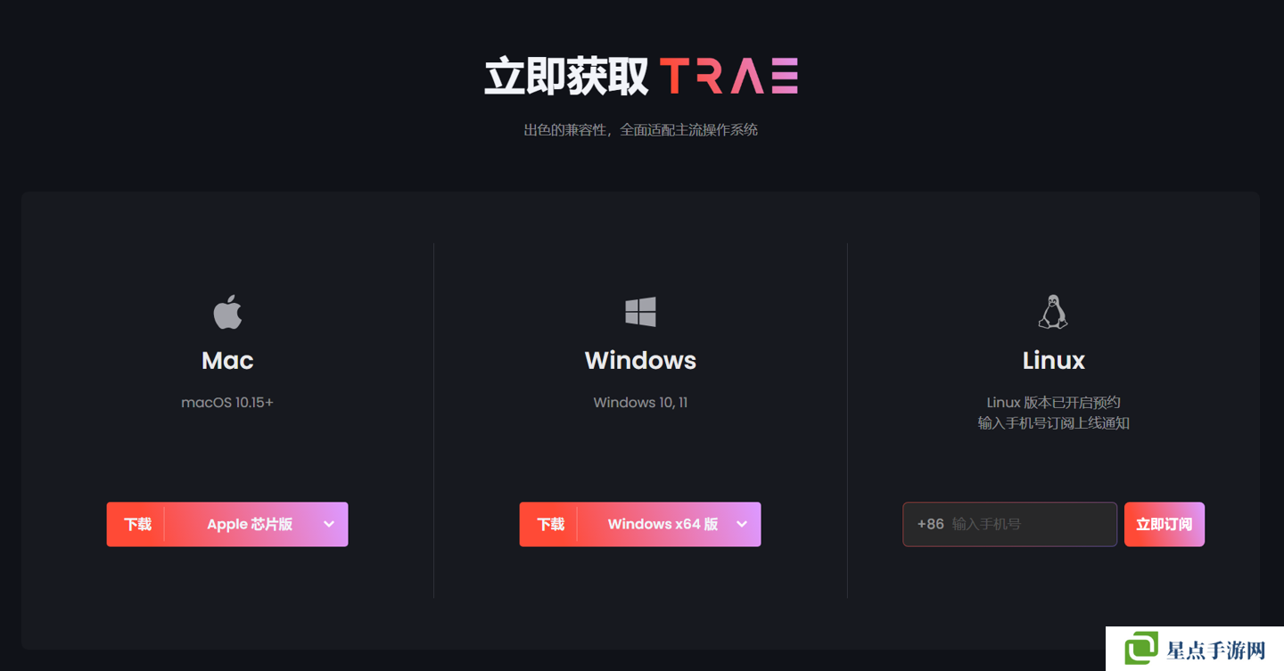 Trae 國內(nèi)版官網(wǎng)現(xiàn)已上線,本站訪問獲悉,該應(yīng)用目前提供 Mac(macOS 10.15 及以上)和 Windows 版(Windows 10、11),后續(xù)還有 Linux 版。