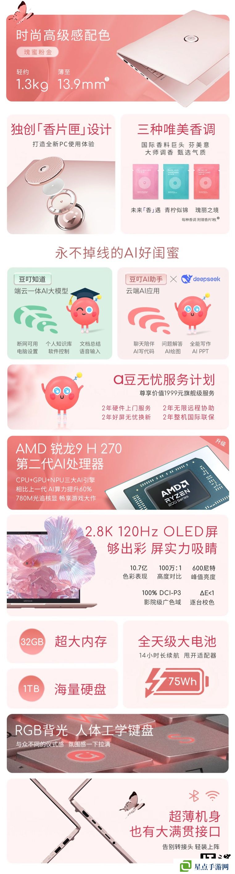 本站獲悉,這款筆記本采用粉色外觀,整體重量1.29千克,厚度13.9毫米,主打“香片匣”設(shè)計(jì),用戶可以為筆記本安裝香片(可選三種氣味),從而能夠讓筆記本散發(fā)出香味;其內(nèi)置75Wh電池,至高可連續(xù)播放17小時(shí)視頻。