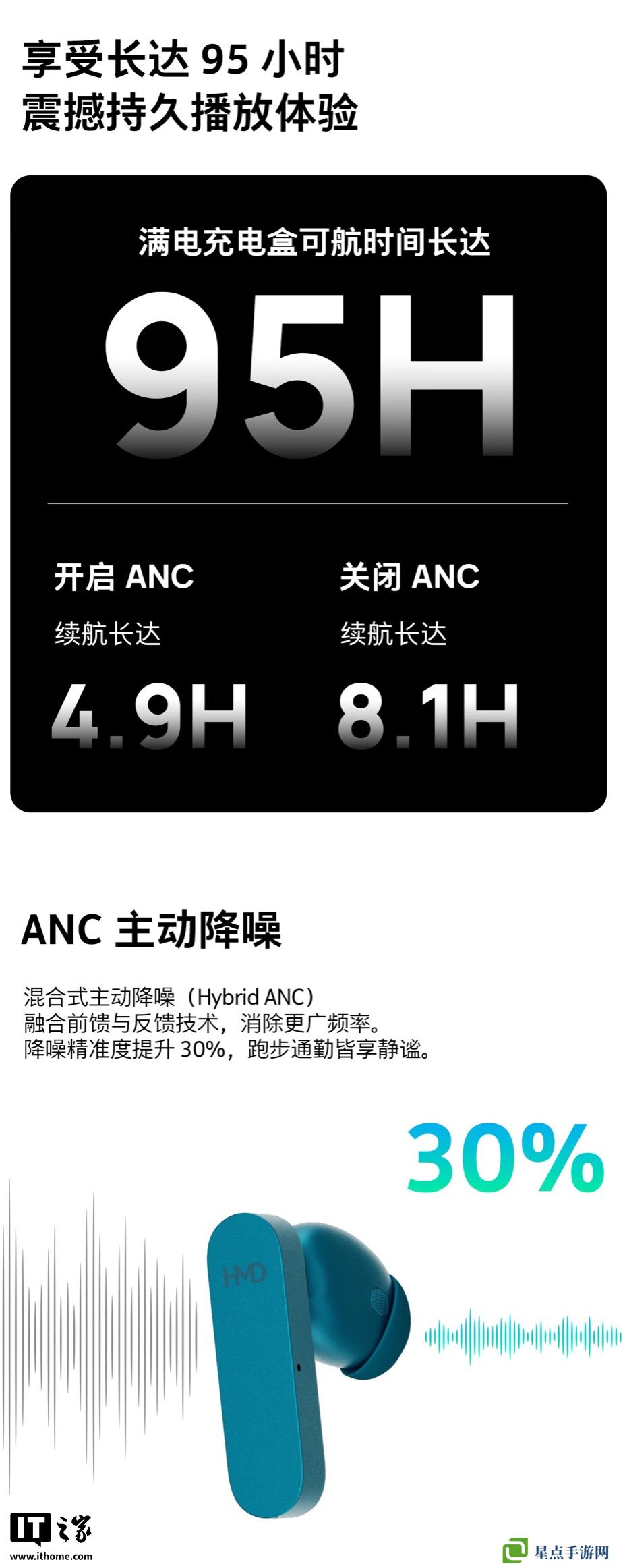 該耳機(jī)配備 10mm 動(dòng)圈,搭載高通 3091 芯片,支持混合ANC / ENC降噪,支持IP54抗水防濺,充電盒配備1600毫安時(shí)電池,單耳機(jī)配備35毫安時(shí)電池,號(hào)稱搭配充電盒續(xù)航至高95小時(shí)。
