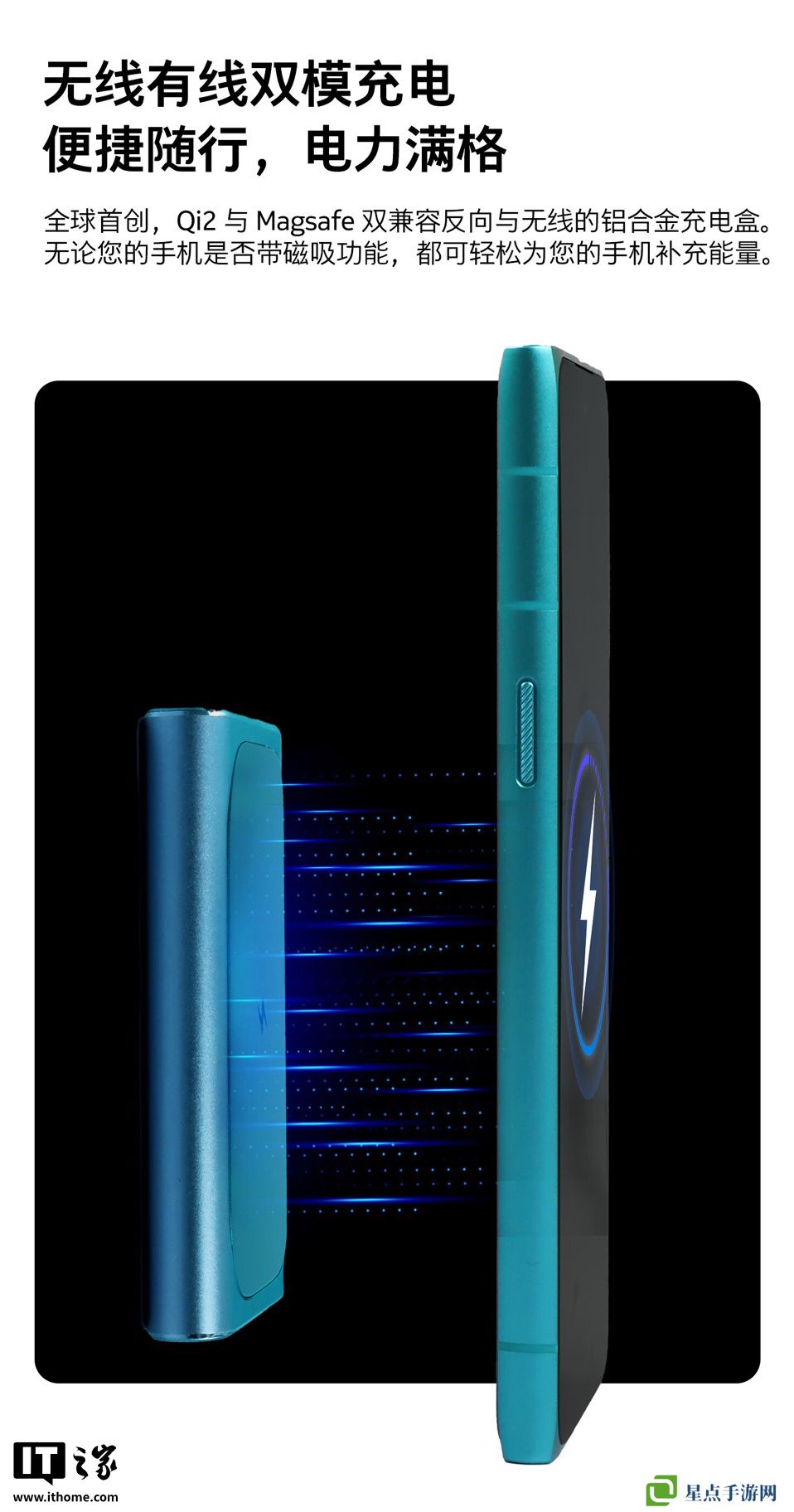本站獲悉,該機(jī)最有趣的特性在于其充電盒內(nèi)置磁吸充電功能,可以吸附在HMD Skyline 或者 iPhone 等手機(jī)上為手機(jī)反向充電。