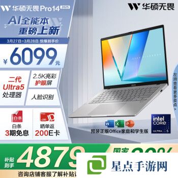 本站 3 月 27 日消息,華碩無畏 Pro 14 酷睿版 2025 今日正式開售,官方定價 6099 元,疊加國補后 4879 元。