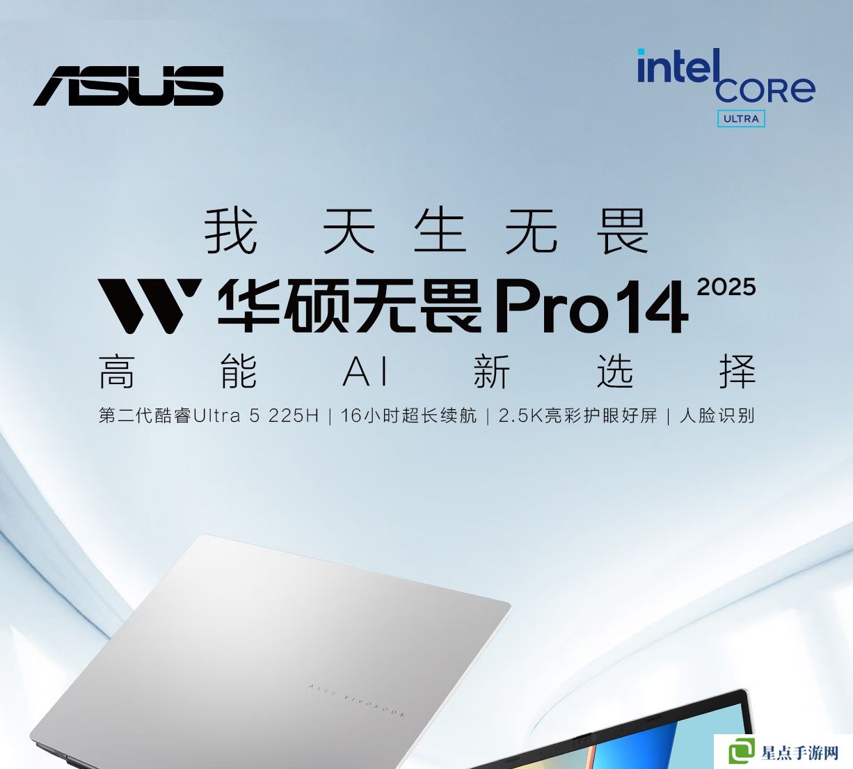 華碩無畏 Pro14 2025 今日開售:英特爾酷睿 Ultra 5 225H、2.5K 屏幕,國補價 4879 元