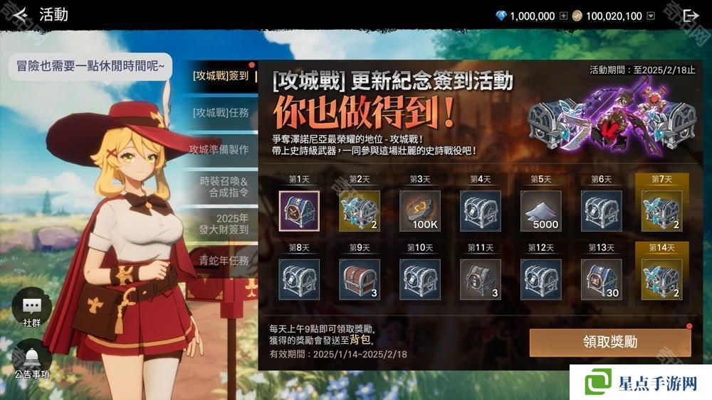 為慶祝「攻城戰(zhàn)」上線,《戰(zhàn)界:澤諾尼亞》同步推出「你也做得到! [攻城戰(zhàn)]更新紀(jì)念簽到活動」,自即日起至 2 月 18 日,玩家只要每日登入游戲,即可免費(fèi)獲得多樣超值獎勵,包括史詩級武器支援選擇箱、成長支援箱、華麗的召喚券 (10 + 1 次) 選擇箱等。