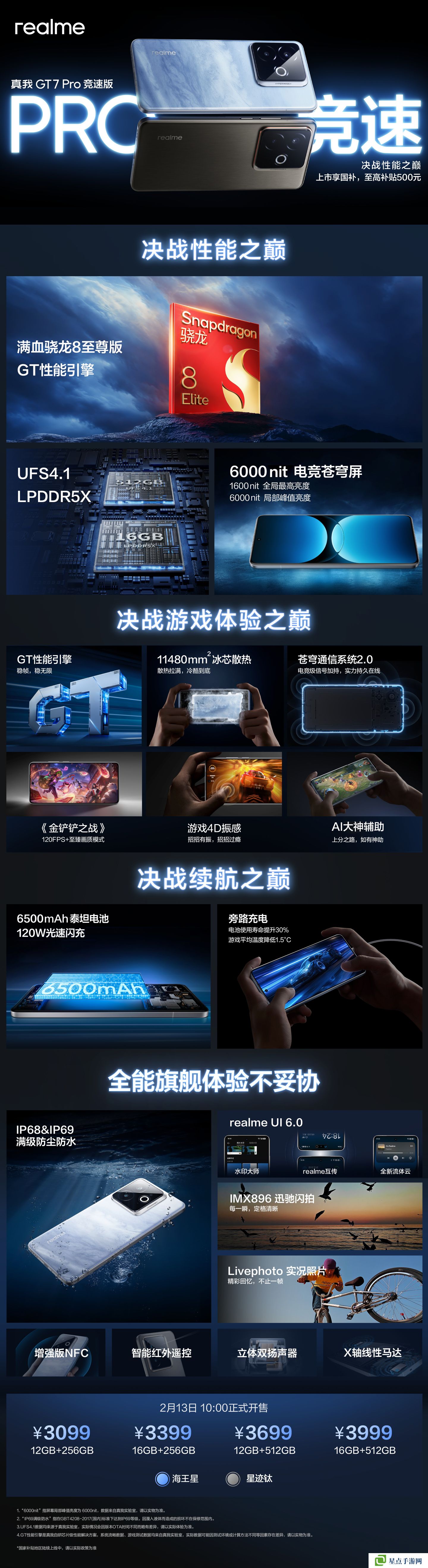 據(jù)介紹,realme 真我 GT7 Pro 競速版手機(jī)搭載驍龍 8 至尊版處理器,配有 LPDDR5X 內(nèi)存 + UFS 4.1 閃存;內(nèi)置 6500mAh 泰坦電池,支持 120W 快充。該機(jī)配備 6.78 英寸 1.5K 電競蒼穹屏(6000nit 峰值亮度 + 1600nit 全局亮度),支持全場景護(hù)眼、2600Hz 瞬時(shí)觸控采樣率,采用等深四曲屏設(shè)計(jì)。