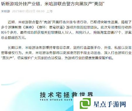 米哈游重拳出擊 多個(gè)制售《原神》**犯罪團(tuán)伙覆滅 發(fā)布時(shí)間:2025-01-23 11:47:28來(lái)源:網(wǎng)絡(luò)作者:
