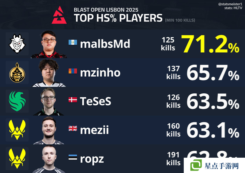 本次賽事的爆頭王是malbsMd,他有71.2%的爆頭率,而第二名是mzinho,為65.7%,第三名是TeSeS,為63.5%。