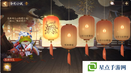 4、華彩小試:茨木呱共創(chuàng)作了5個(gè)燈謎簡(jiǎn)筆畫,每日解鎖1個(gè)燈謎,猜對(duì)簡(jiǎn)筆畫對(duì)應(yīng)的式神可獲得「喜樂元宵」。