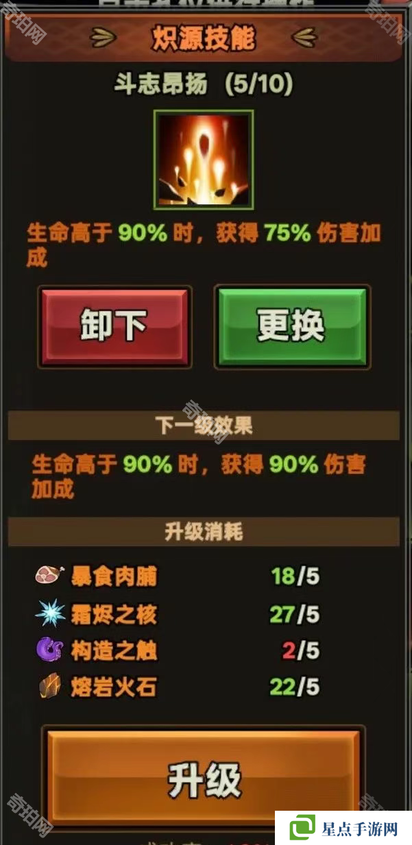 通關(guān)后魔火優(yōu)先提升遠(yuǎn)程傷害,當(dāng)魔火點(diǎn)數(shù)達(dá)到15點(diǎn)和30點(diǎn)時(shí)可選擇熾源技能(本試煉不推薦使用遇強(qiáng)則強(qiáng),建議使用返璞歸真和斗志昂揚(yáng),陣風(fēng)可作為備選)。