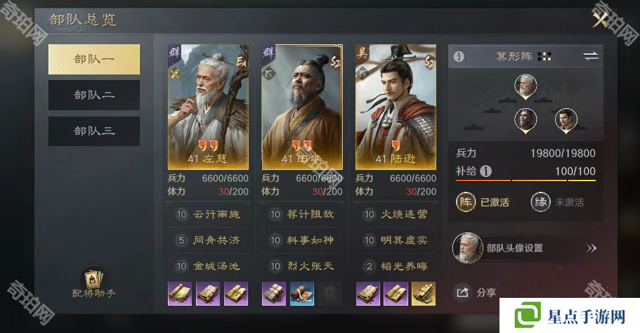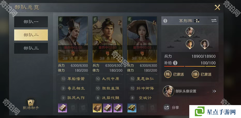 這兩隊(duì)開荒隊(duì)平民最舒服的地方,就是戰(zhàn)法互換!前期戰(zhàn)法不夠點(diǎn)滿兩隊(duì)的,二隊(duì)一般是三個(gè)武將主戰(zhàn)法平均能到六級(jí)。