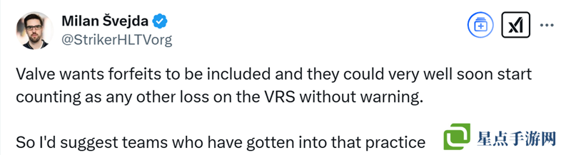 日前HLTV編輯Striker在社交平臺(tái)上透露,V社有意將棄賽納入VRS考量當(dāng)中。