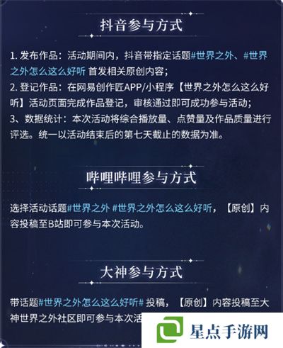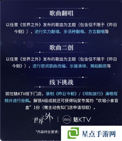 世界之外年度音樂挑戰(zhàn)賽,將在B站、抖音、網(wǎng)易大神三平臺同步開啟!投稿贏取現(xiàn)金及線下門店好禮!