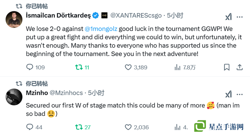 XANTARES:我們0-2輸給了The MongolZ戰(zhàn)隊。祝他們在本次賽事中好運!這是一場精彩的較量,我們竭盡全力爭取勝利,但很遺憾,還是不夠。非常感謝從賽事一開始就支持我們的每一個人。下次征程再見!