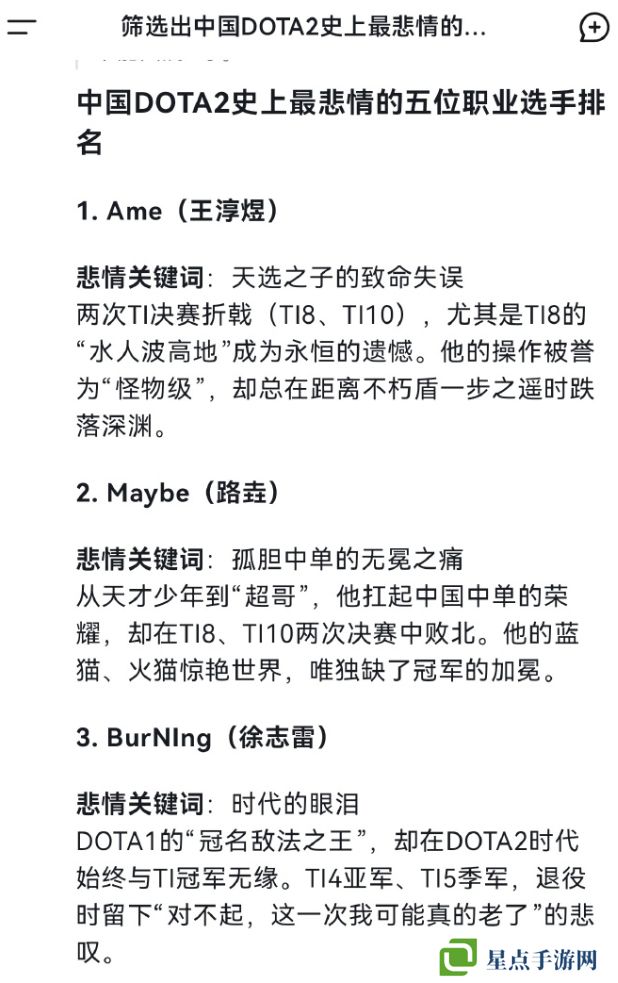 DeepSeek篩選中國DOTA2歷史上最悲情職業(yè)選手:
