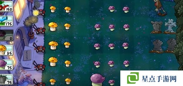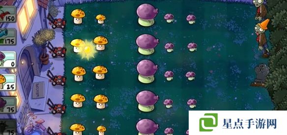 2、先在左側(cè)種植兩個陽光菇,在中間種植三個小噴菇。